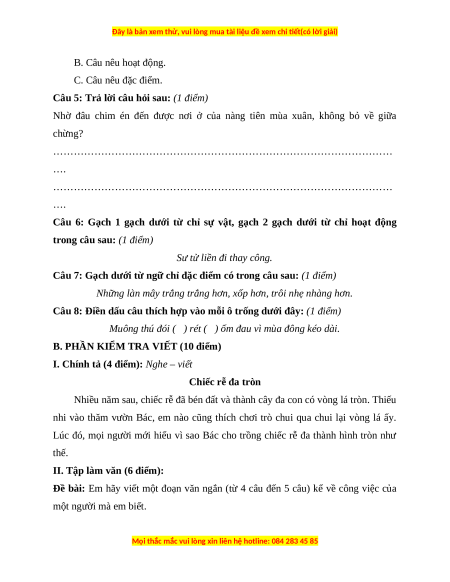 B. PHẦN KIỂM TRA VIẾT (10 điểm)