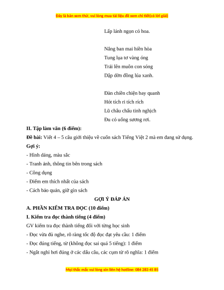A. PHẦN KIỂM TRA ĐỌC (10 điểm)
