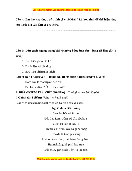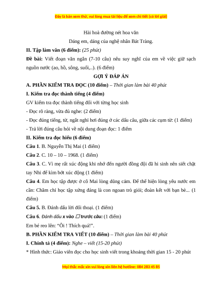 B. PHẦN KIỂM TRA VIẾT (10 điểm) – Thời gian làm bài 40 phút