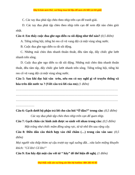 Câu 4: Em thấy cuộc đua ghe ngo diễn ra sôi động như thế nào? (0,5 điểm)