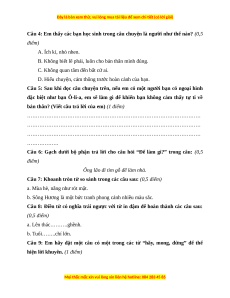 Câu 4: Em thấy các bạn học sinh trong câu chuyện là người như thế nào? (0,5 điểm) A. Ích kỉ, nhỏ nhen.
