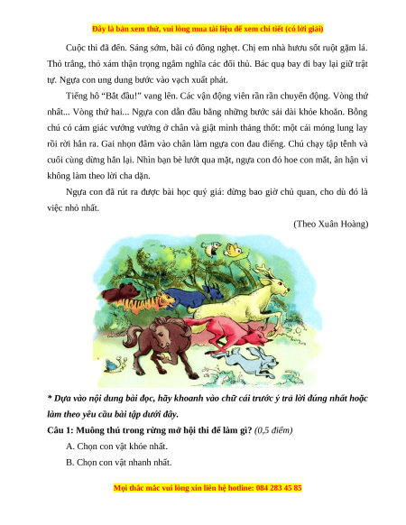 Câu 1: Muông thú trong rừng mở hội thi để làm gì? (0,5 điểm)