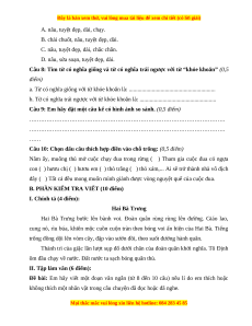 I. Chính tả (4 điểm): Hai Bà Trưng