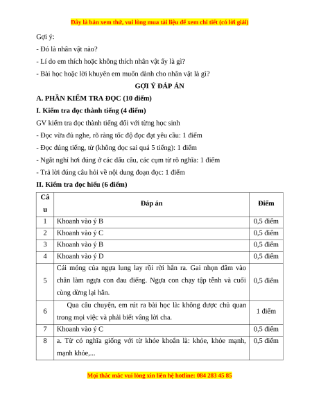 A. PHẦN KIỂM TRA ĐỌC (10 điểm)