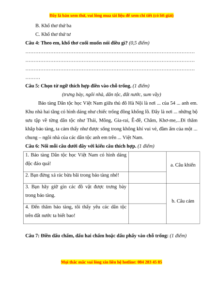 Câu 3: Khổ thơ nào miêu tả vẻ đẹp trong căn nhà của bạn nhỏ? (0,5 điểm) A. Khổ thơ thứ hai