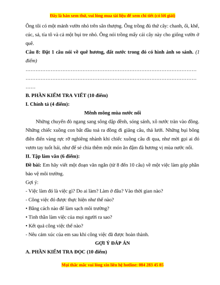 B. PHẦN KIỂM TRA VIẾT (10 điểm)