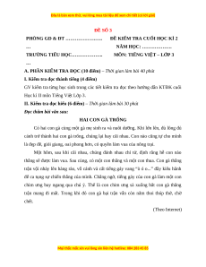 Đề thi cuối kì 2 Tiếng Việt lớp 3 Kết nối tri thức (Đề 3)