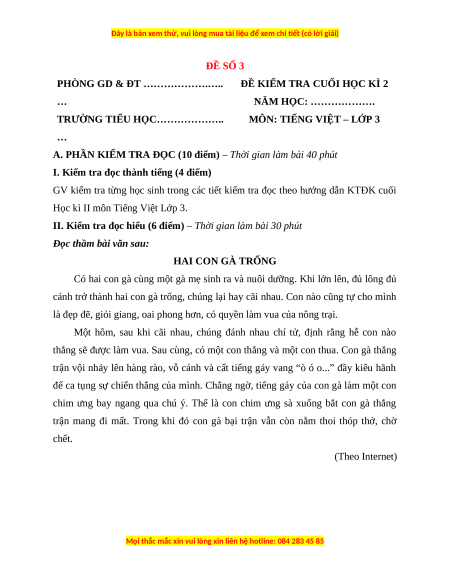 Đọc thầm bài văn sau: HAI CON GÀ TRỐNG