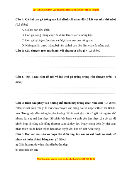 Câu 6: Đặt 1 câu cảm để nói về hai chú gà trống trong câu chuyện trên. (1 điểm)