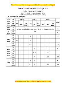 A. PHẦN KIỂM TRA ĐỌC Nội Số Mức 1 Mức 2 Mức 3 dung câu, Tổng kiểm số TN HT TN HT HT TL TL TN TL tra điểm khác khác khác Đọc Số 1 thàn câu