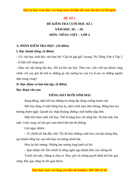 - Tailieugiaovien.com.vn giới thiệu bộ 10 đề cuối kì 2 gồm đầy đủ ma trận và lời giải chi tiết môn Tiếng việt lớp 4 Chân trời sáng tạo mới nhất nhằm giúp Giáo viên có thêm tài liệu tham khảo ra đề thi Tiếng việt lớp 4.
