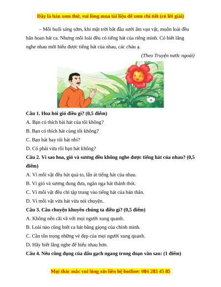 Câu 1. Hoa hỏi gió điều gì? (0,5 điểm)