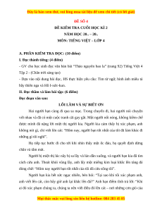 - Tailieugiaovien.com.vn giới thiệu bộ 10 đề cuối kì 2 gồm đầy đủ ma trận và lời giải chi tiết môn Tiếng việt lớp 4 Chân trời sáng tạo mới nhất nhằm giúp Giáo viên có thêm tài liệu tham khảo ra đề thi Tiếng việt lớp 4.