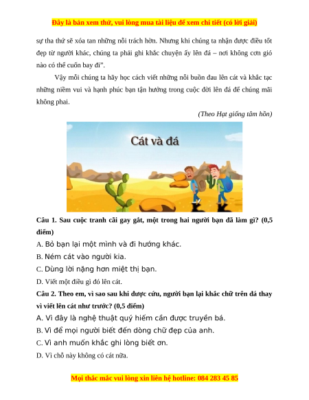 Câu 1. Sau cuộc tranh cãi gay gắt, một trong hai người bạn đã làm gì? (0,5 điểm)