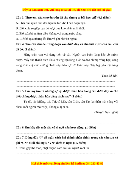 Câu 3. Theo em, câu chuyện trên đã cho chúng ta bài học gì? (0,5 điểm)