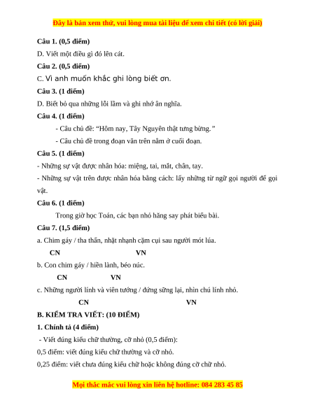 B. PHẦN KIỂM TRA VIẾT: (10 điểm)
