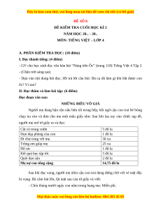 A. PHẦN KIỂM TRA ĐỌC: (10 điểm)