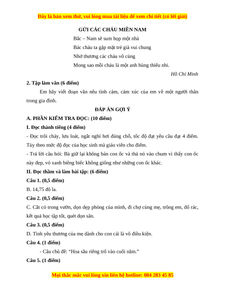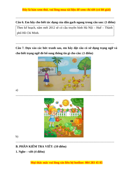 B. PHẦN KIỂM TRA VIẾT: (10 điểm)