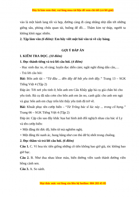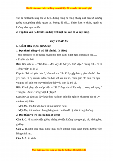 2. Tập làm văn (6 điểm): Em hãy viết một bài văn tả về cây bàng. GỢI Ý ĐÁP ÁN