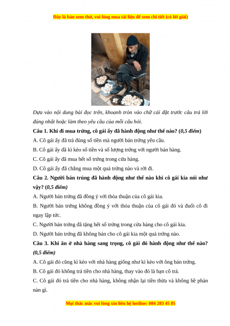 Câu 1. Khi đi mua trứng, cô gái ấy đã hành động như thế nào? (0,5 điểm)