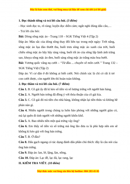 1. Đọc thành tiếng và trả lời câu hỏi. (3 điểm)