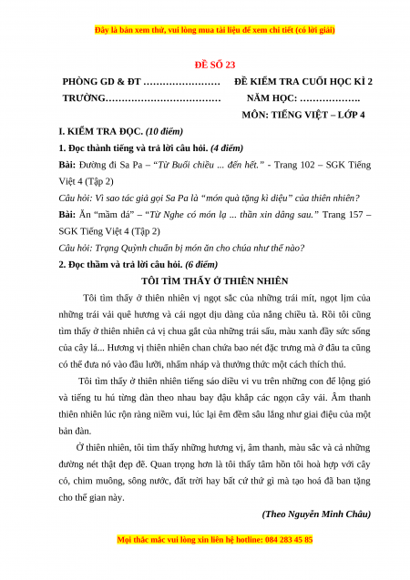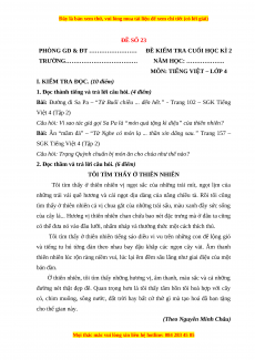 Đề thi cuối kì 2 Tiếng Việt lớp 4 (Đề 23)