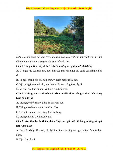 Câu 1. Tác giả tìm thấy ở thiên nhiên những vị ngọt nào? (0,5 điểm)