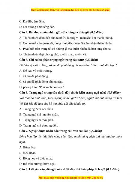 Đây là bản xem thử, vui lòng mua tài liệu để xem chi tiết (có lời giải)