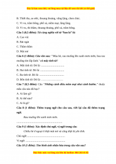 Câu 8 (1 điểm): Mùa hè, rau muống lên xanh mơn mởn. Câu 9 (1 điểm):