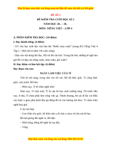 ĐỀ KIỂM TRA CUỐI HỌC KÌ 2