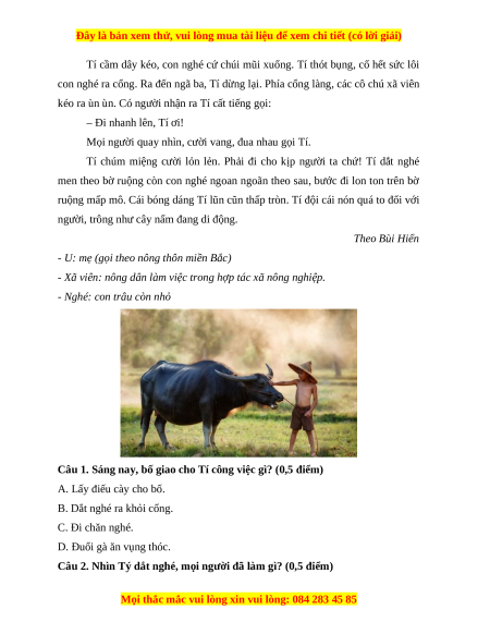 Tí cầm dây kéo, con nghé cứ chúi mũi xuống. Tí thót bụng, cố hết sức lôi