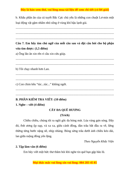1. Nghe – viết (4 điểm) CÂY ĐA QUÊ HƯƠNG (Trích)