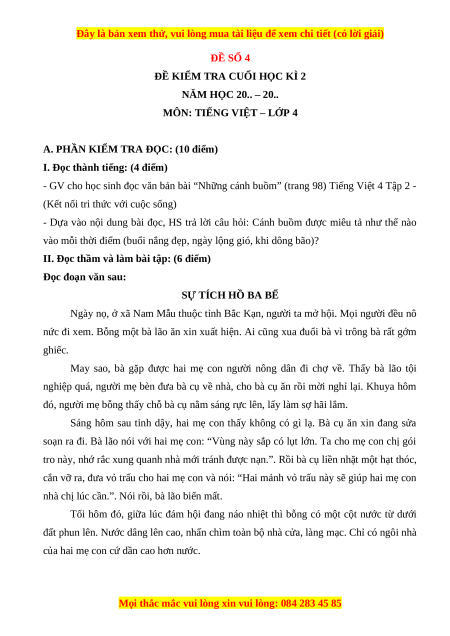 - Tailieugiaovien.com.vn giới thiệu bộ 10 đề cuối kì 2 gồm đầy đủ ma trận và lời giải chi tiết môn Tiếng việt lớp 4 Kết nối tri thức mới nhất nhằm giúp Giáo viên có thêm tài liệu tham khảo ra đề thi Tiếng việt lớp 4.