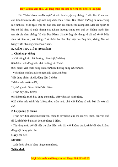 B. PHẦN KIỂM TRA VIẾT: (10 điểm)