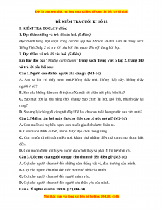 ĐỀ KIỂM TRA CUỐI KÌ SỐ 12