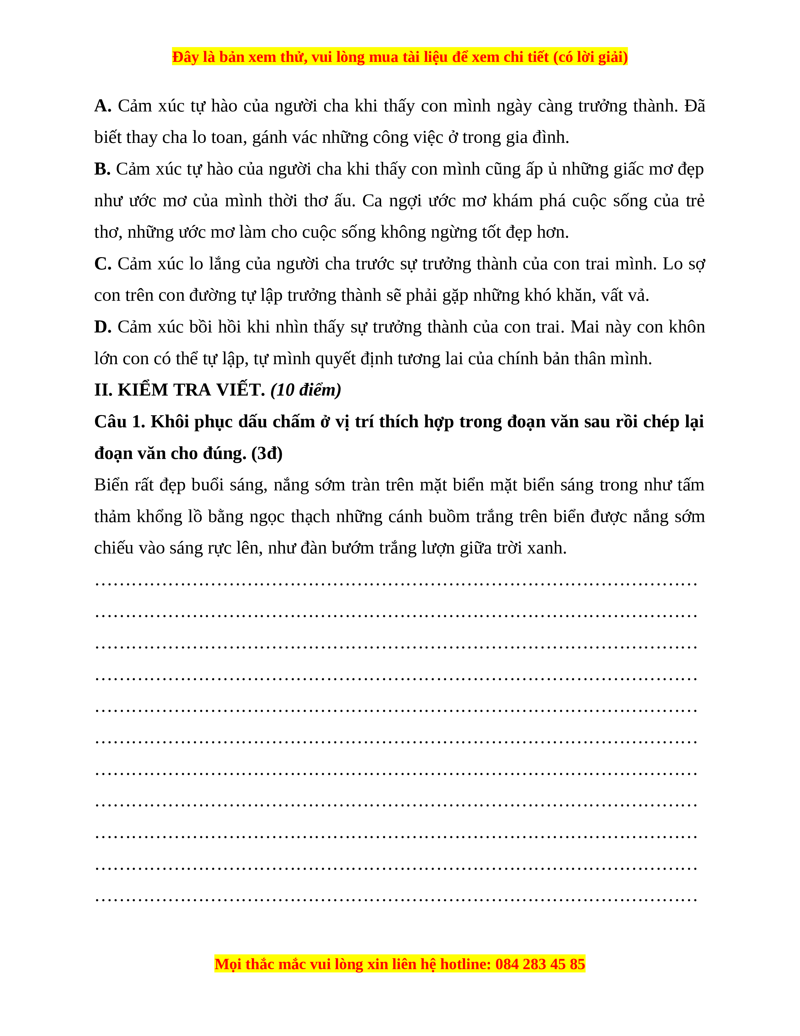 Đây là bản xem thử, vui lòng mua tài liệu để xem chi tiết (có lời giải)