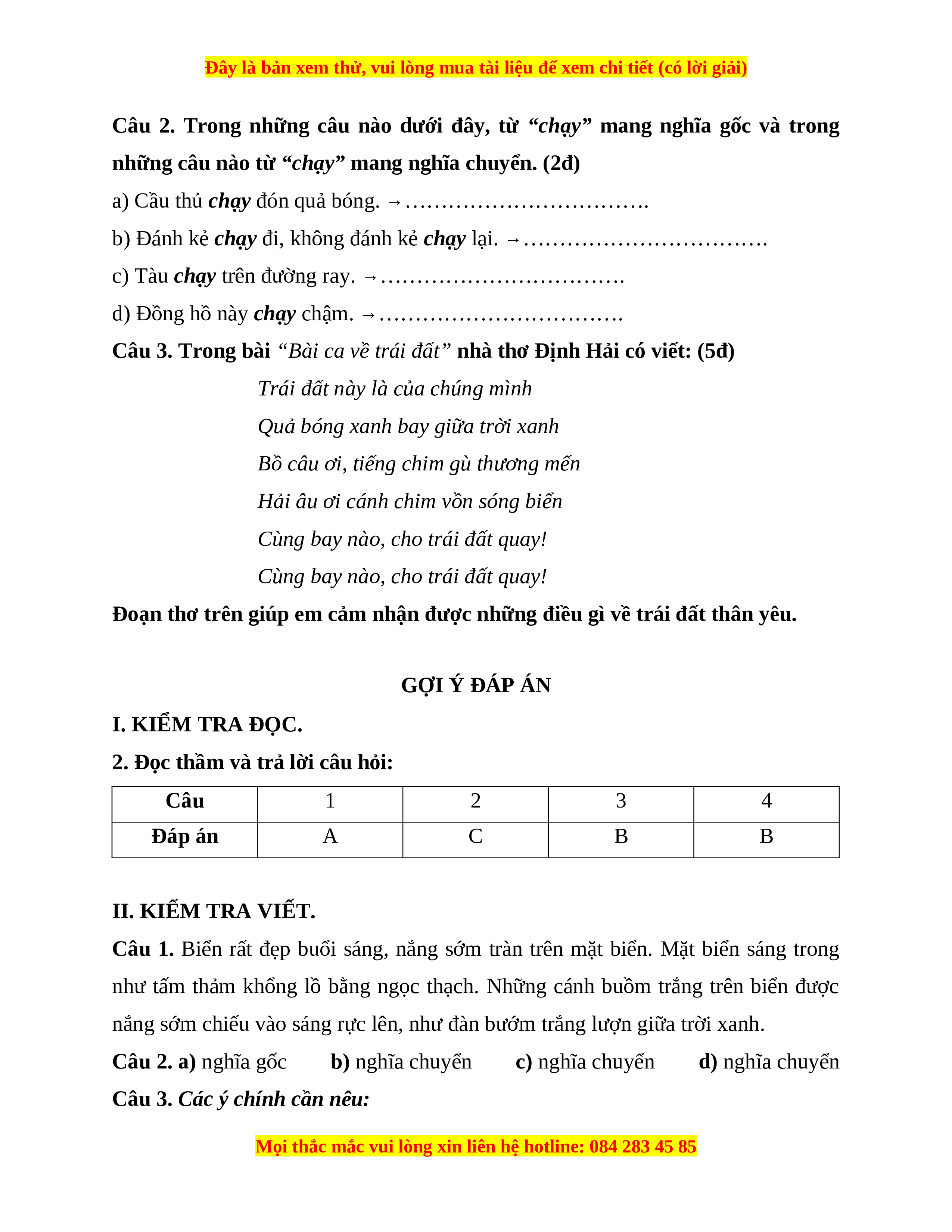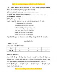 2. Đọc thầm và trả lời câu hỏi: Câu 1 2 3 4 Đáp án A C B B II. KIỂM TRA VIẾT.