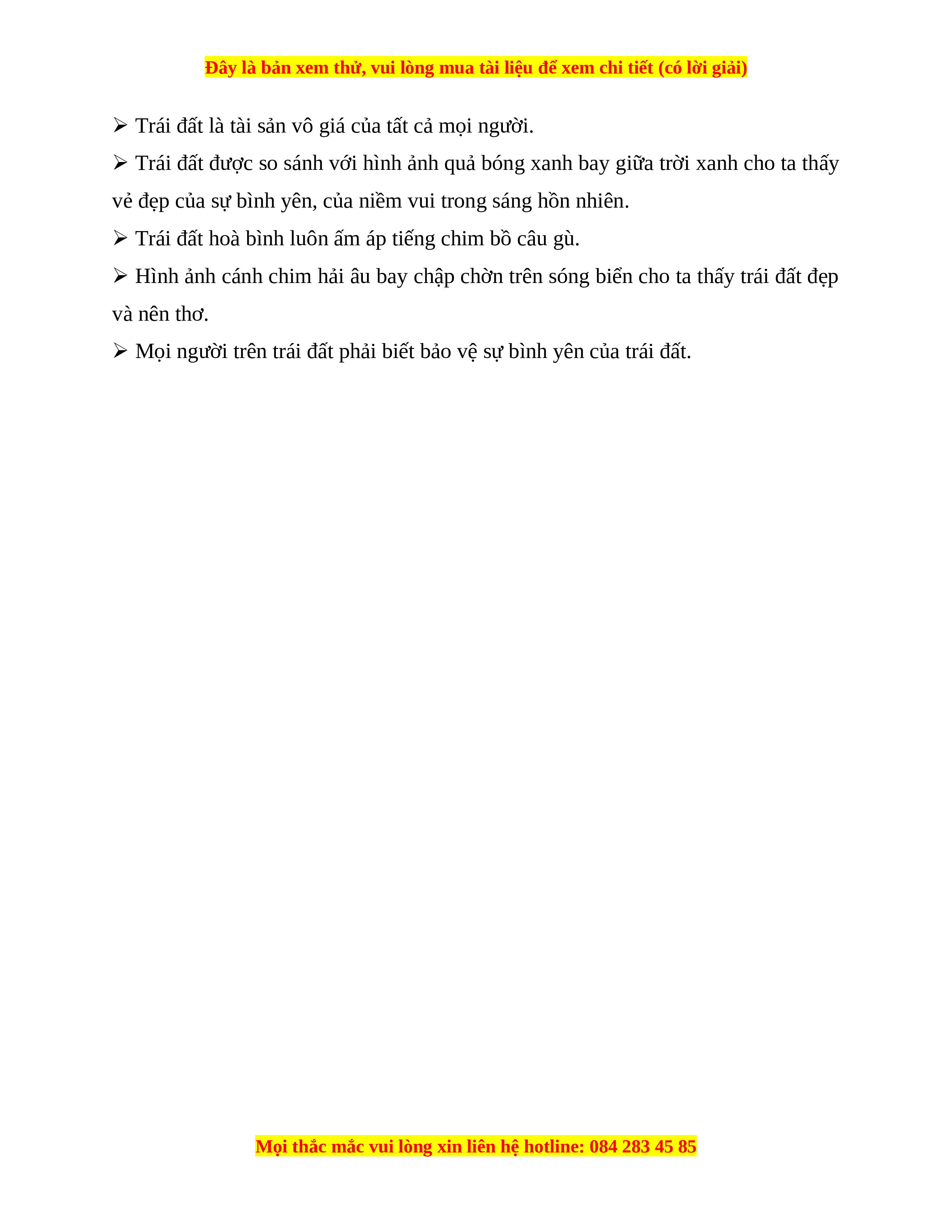 Mọi người trên trái đất phải biết bảo vệ sự bình yên của trái đất.