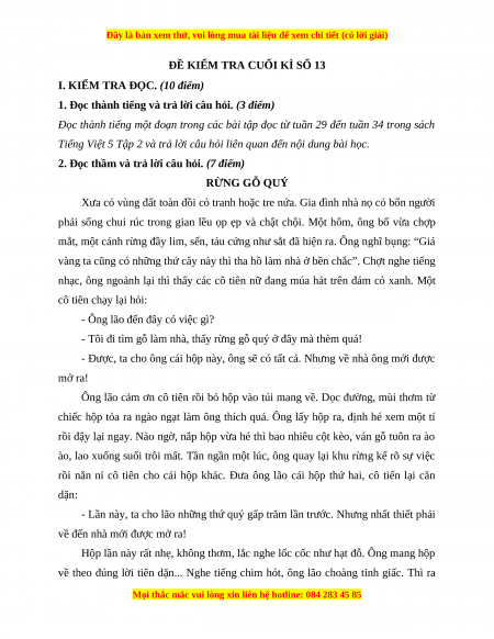 Đề thi cuối kì 2 Tiếng Việt lớp 5 năm 2023 (Đề 13)