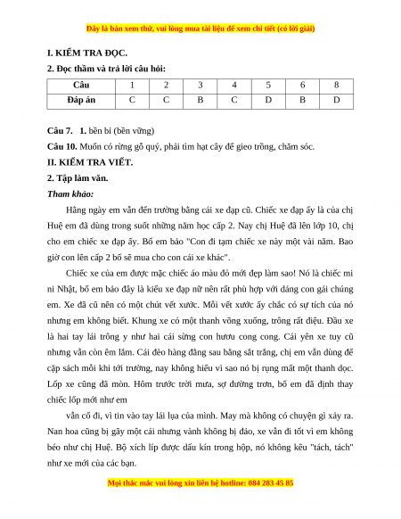 Câu 10. Muốn có rừng gỗ quý, phải tìm hạt cây để gieo trồng, chăm sóc. II. KIỂM TRA VIẾT. 2. Tập làm văn. Tham khảo: