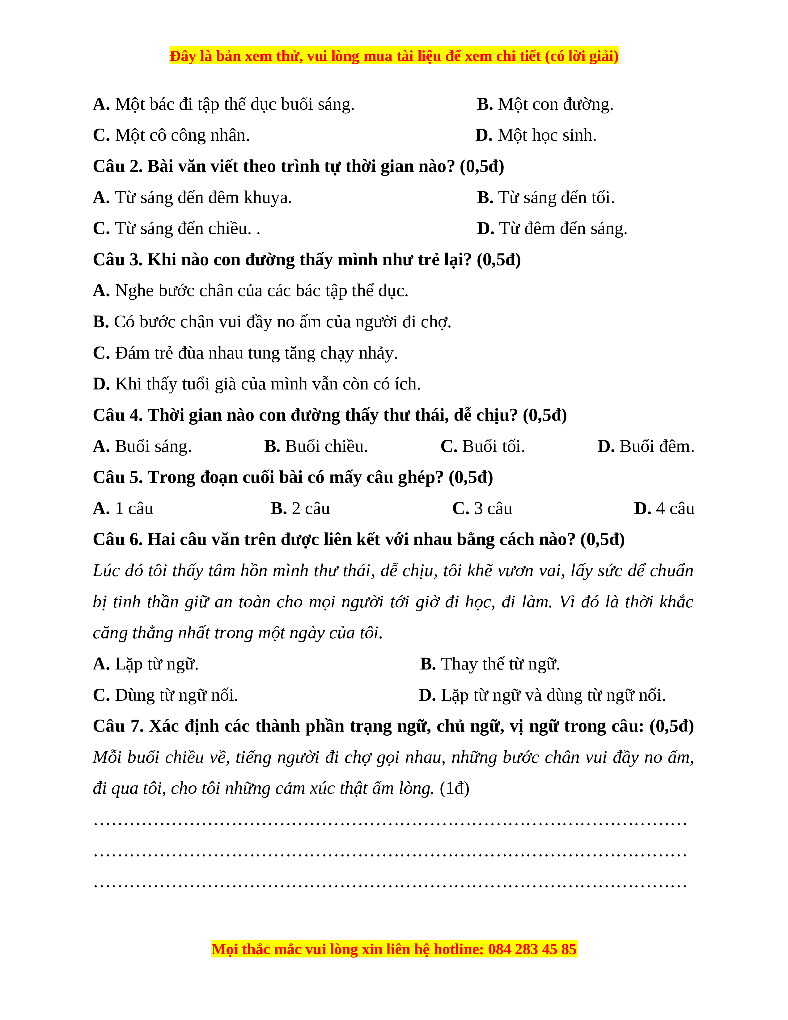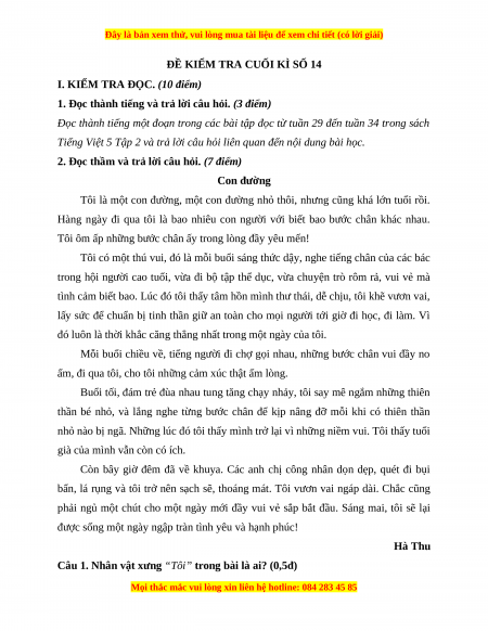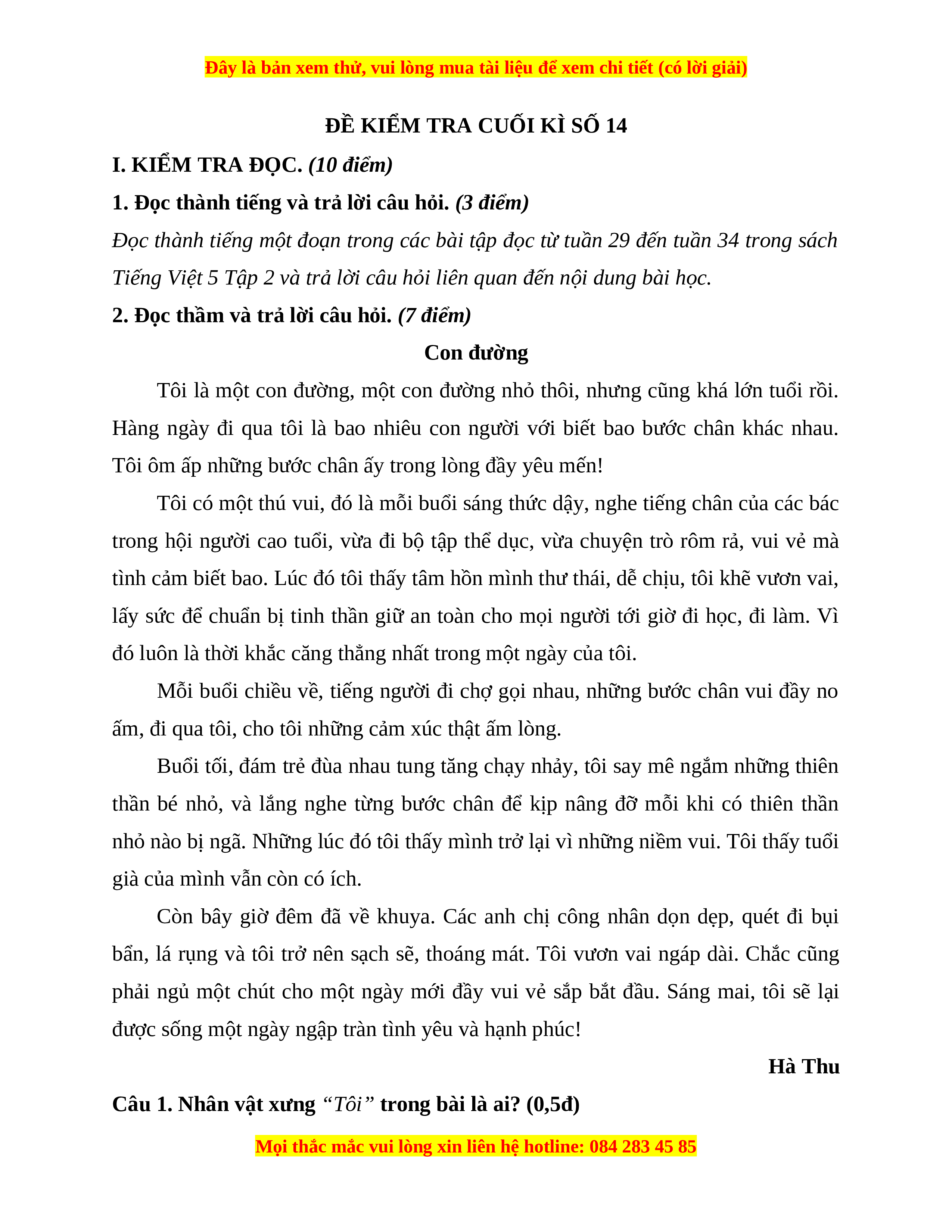 2. Đọc thầm và trả lời câu hỏi. (7 điểm) Con đường