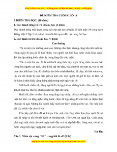 1. Đọc thành tiếng và trả lời câu hỏi. (3 điểm)