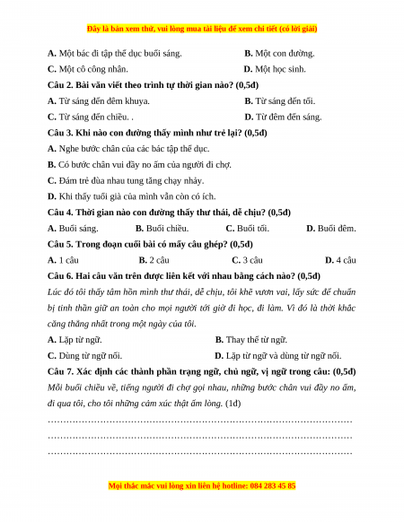 Câu 5. Trong đoạn cuối bài có mấy câu ghép? (0,5đ)