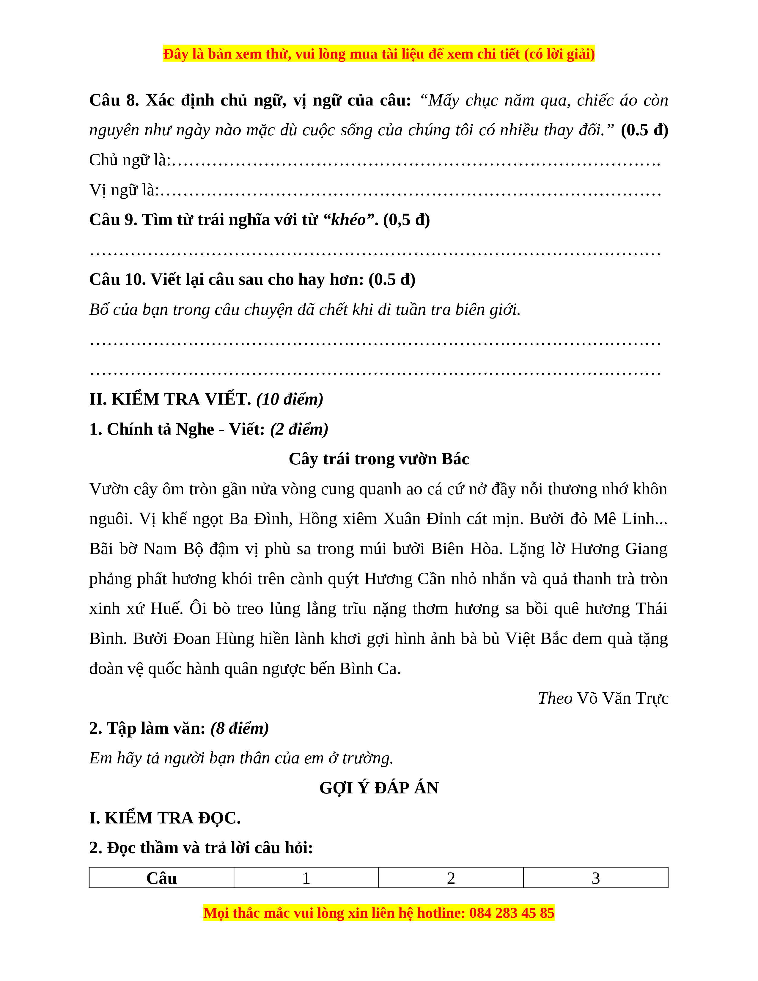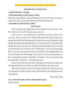 1. Đọc thành tiếng và trả lời câu hỏi. (3 điểm)