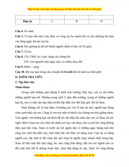 Đáp án C B D Câu 4. So sánh.