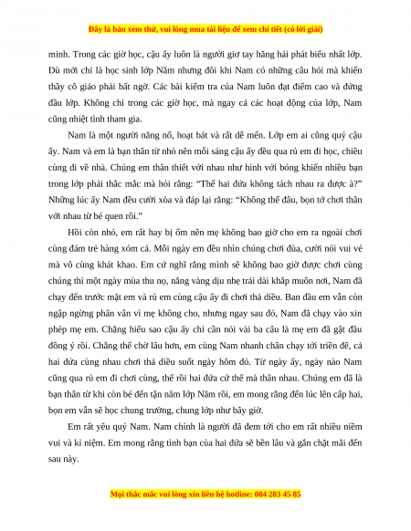 ấy. Nam và em là bạn thân từ nhỏ nên mỗi sáng cậu ấy đều qua rủ em đi học, chiều