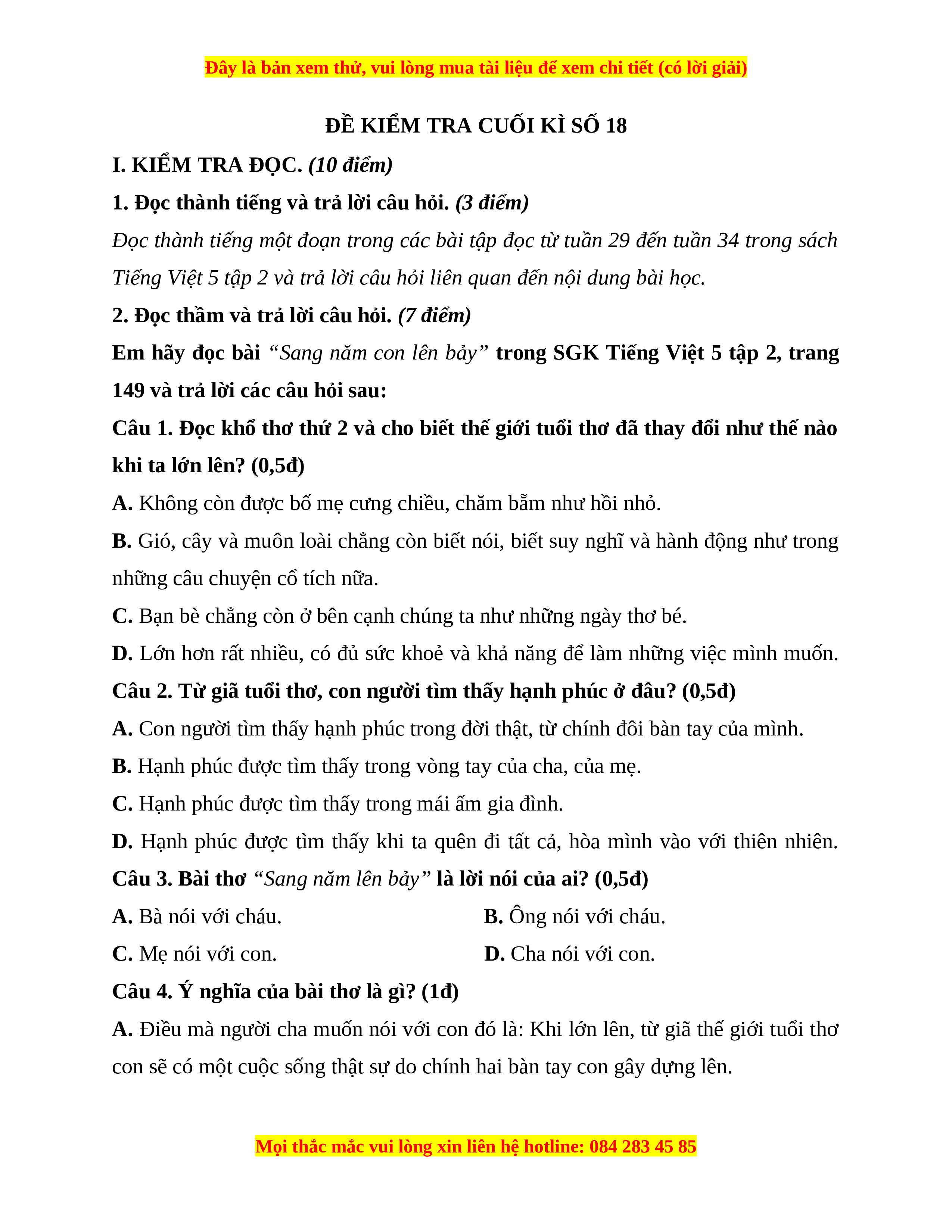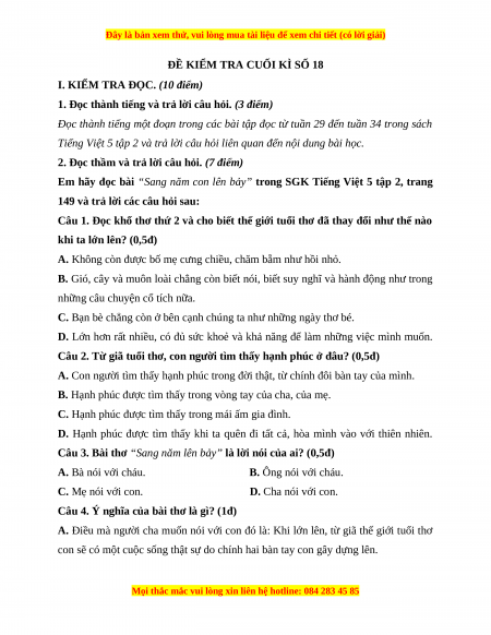 ĐỀ KIỂM TRA CUỐI KÌ SỐ 18