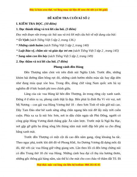 I. KIỂM TRA ĐỌC. (10 điểm)