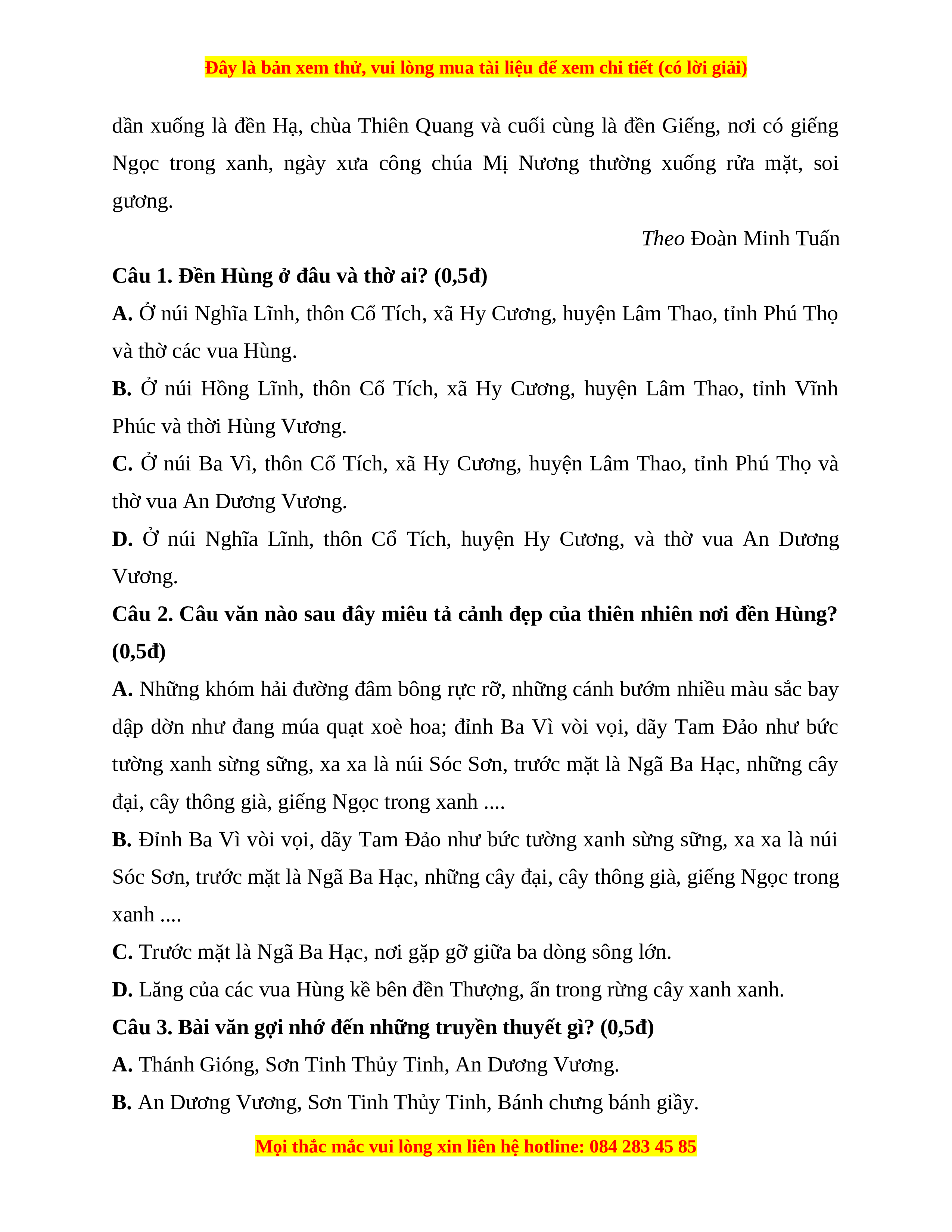 Câu 1. Đền Hùng ở đâu và thờ ai? (0,5đ)