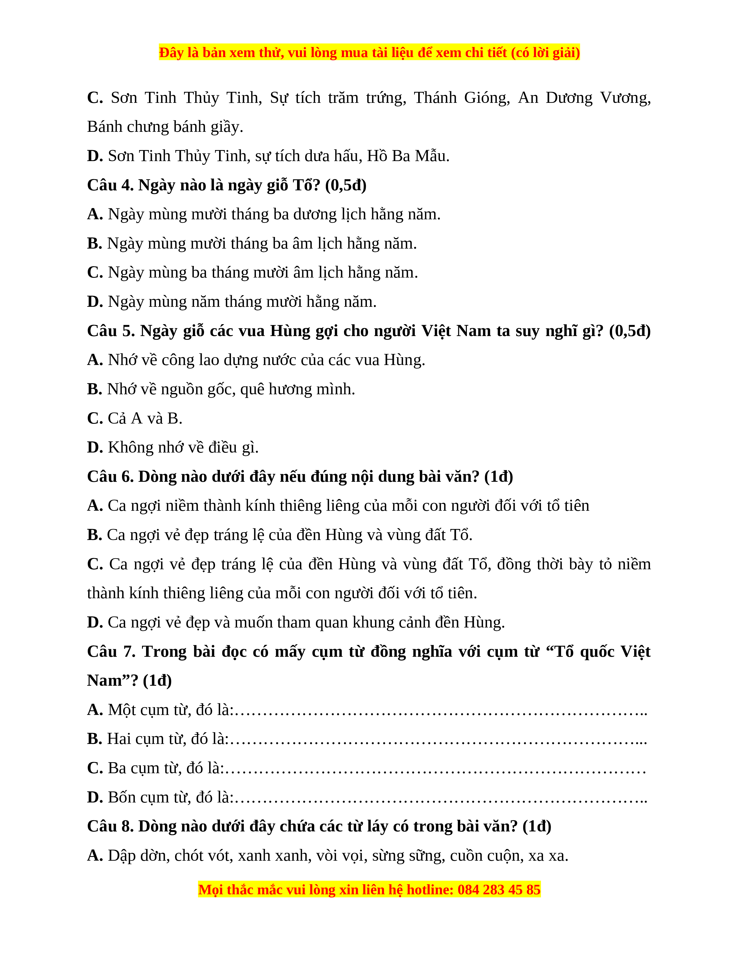 Đây là bản xem thử, vui lòng mua tài liệu để xem chi tiết (có lời giải)